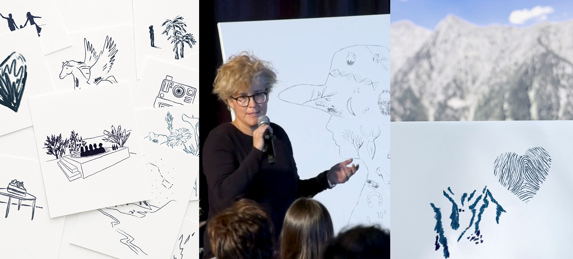Estoy presente, observo y dibujo lo que sucede para crear una memoria visual de un evento: un taller, un retiro, una acción artística, una vivencia emocional, un tránsito, una celebración, una acción teatral, un cambio profundo vital, un proceso terapéutico, etc.