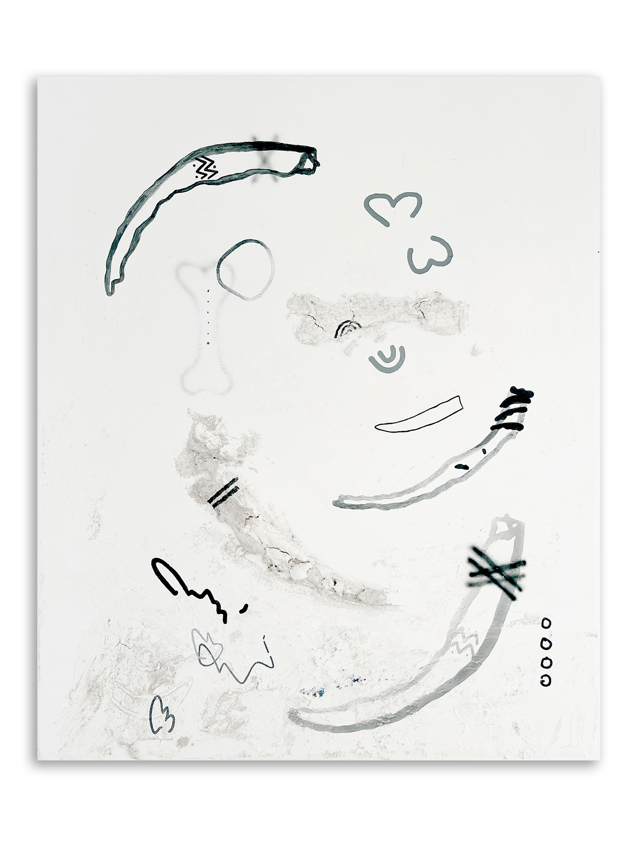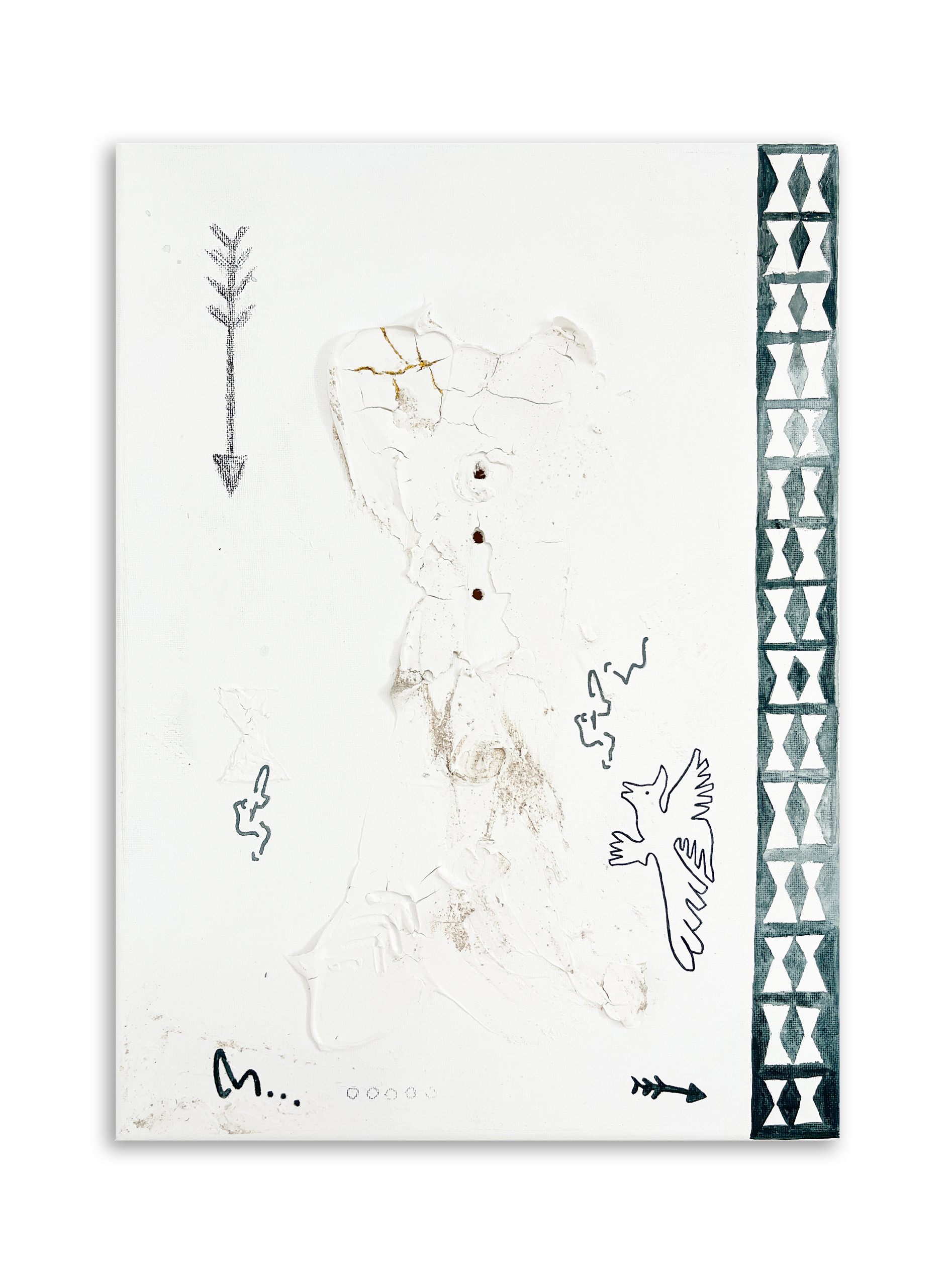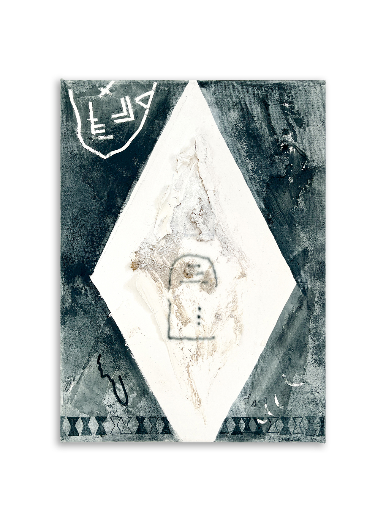 Acrílico, acuarela, arena, piedras, grafito, lápices de colores y agua de lluvia sobre lienzos.