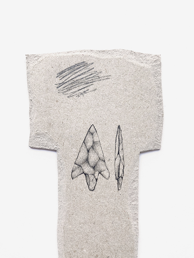 También he introducido en los mismos tótems objetos encontrados in situ como puntas de flecha o trozos de cerámica, así como elementos de medición utilizados en arqueología.