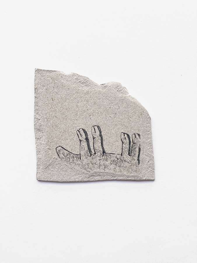 Grafito, lápices de colores y fuego sobre cartón reciclado.