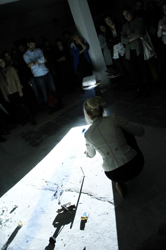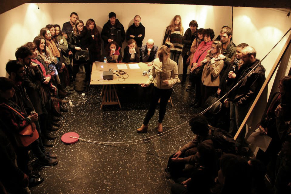 En este vídeo se puede ver un resumen. La acción consistió en una visita guiada por unas piezas que había seleccionado del propio espacio o había producido y colocado en el mismo.