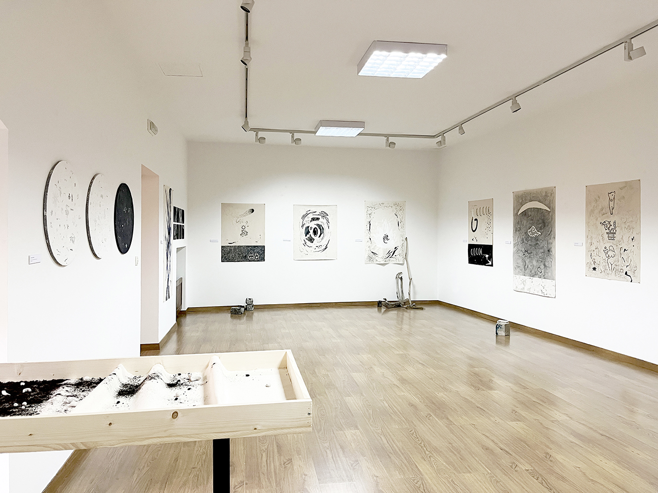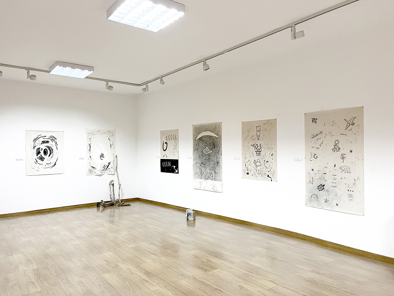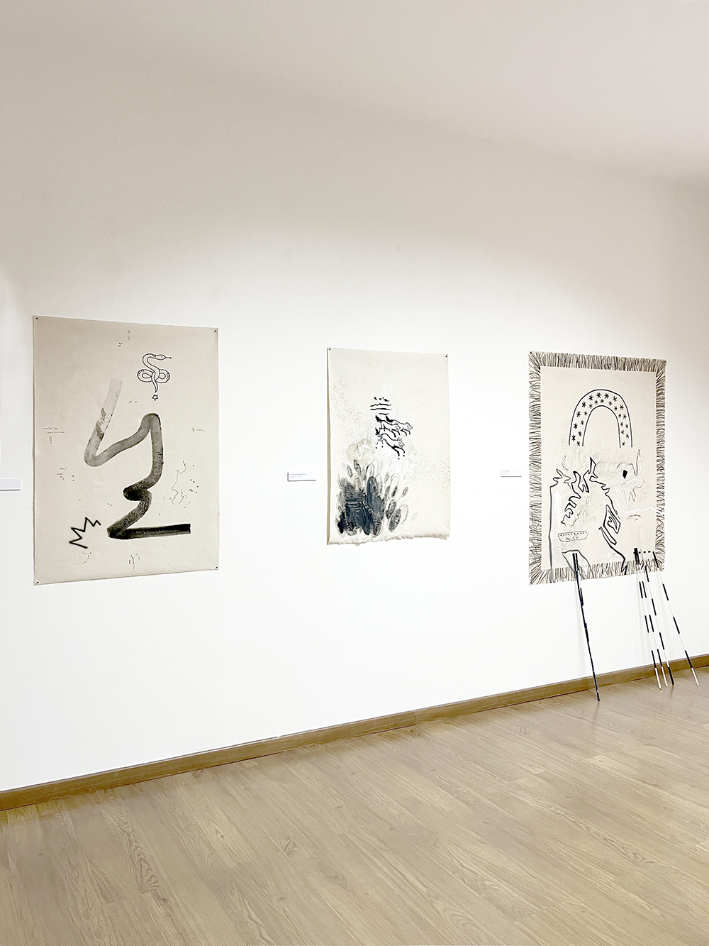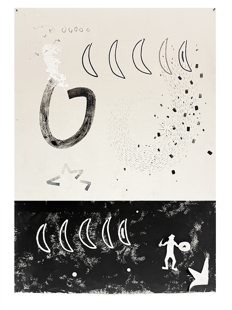 Todos estos usos que hemos dado a las estrellas son los que conforman la exposición. Las piezas están realizadas con materiales naturales diversos como agua de lluvia, cartón, tela, arena, pizarra, arcilla y mármol, y técnicas como acrílico, acuarela, grafito y pastel.