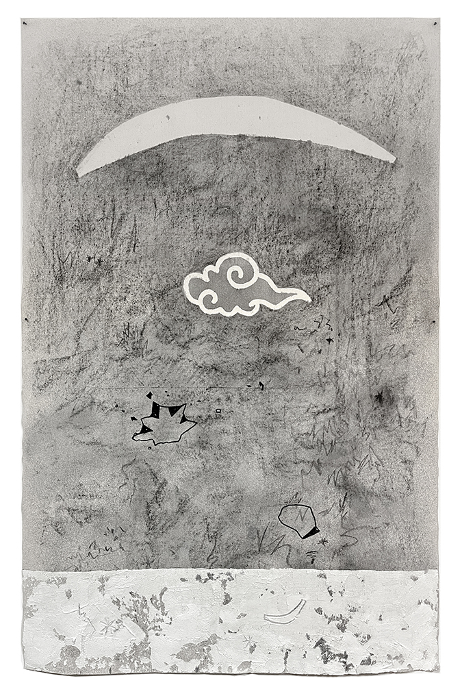 Agua de lluvia, fósiles, piedras, cera, pizarra, acrílico, grafito, arcilla blanca, madera, yeso, cemento, lijas, cartón, hilo, imanes, tela y papel.