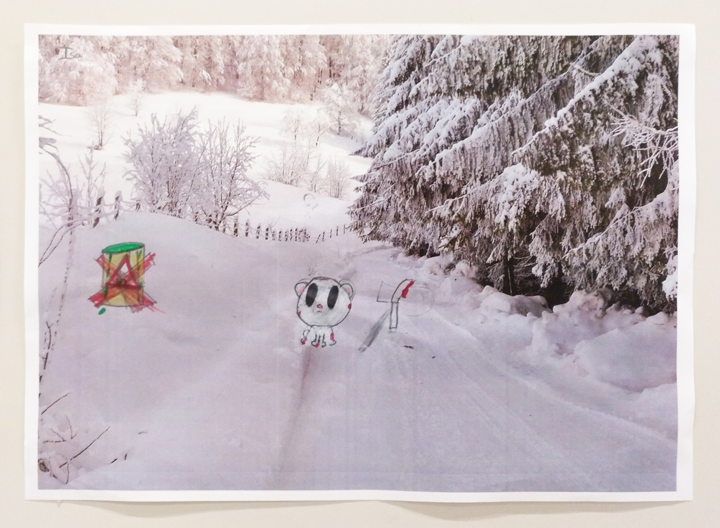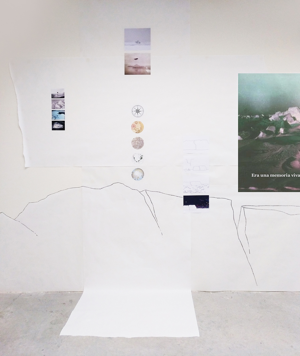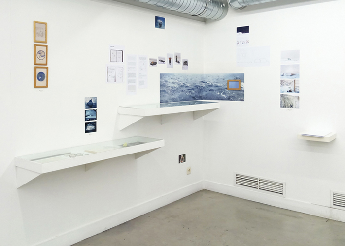 Formalmente se presenta una instalación en la que encontramos una vitrina, una estantería, fotografías y dibujos. En el interior de la vitrina hay objetos personales (gafas, un anillo, una brújula, etc.), elementos naturales (rocas, fósiles…) y dos diarios de dos personajes: un explorador polar que estuvo allí antes de 1980 (fecha desde la que existe el Polo Norte según nuestra manera de saber y contar) y Frank Hurley, fotógrafo polar cuya mirada es una de las que conforma nuestro conocimiento del lugar.