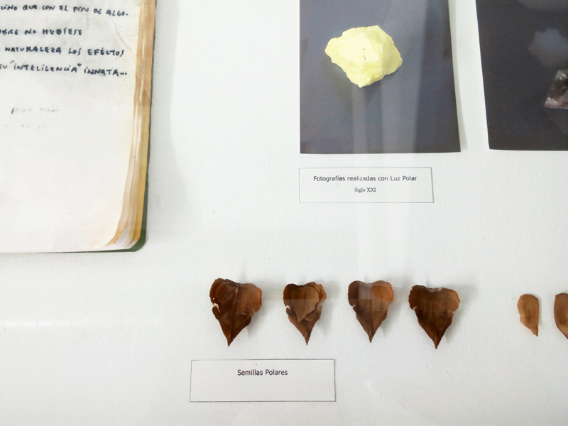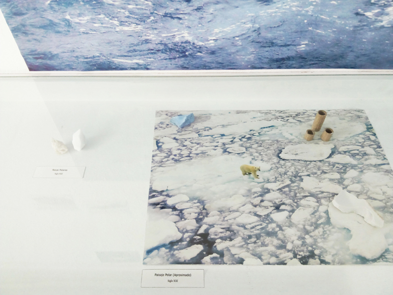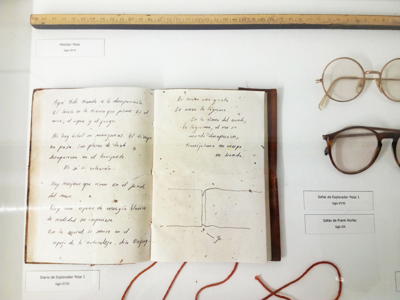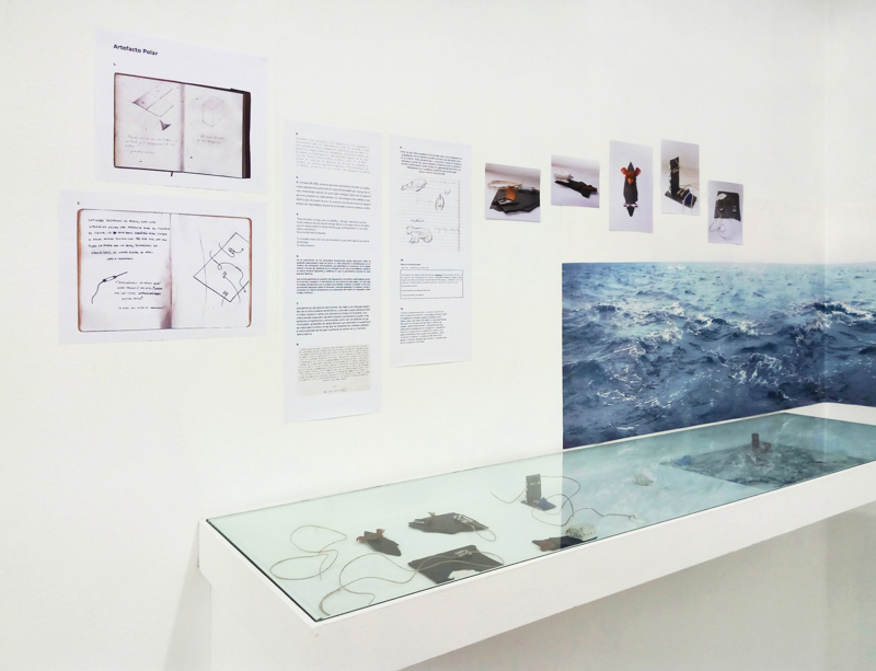 Por último, en la vitrina, hay un objeto que es el principal del proyecto y que he llamado Artefacto Polar. Es un objeto encontrado en el hielo cuya procedencia, uso e historia se desconocen. He invitado a una serie de personajes diversos a investigar sobre él.